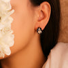 Description: "Adorn your ears with the alluring mystery of our Midnight Bloom Studs. ✨ These exquisite earrings feature a captivating oval base of deep, lustrous blue-black enamel or stone, elegantly contrasted by a delicate gold-toned leaf or petal motif. The intricate design is further enhanced with sparkling white accent stones, adding a touch of celestial brilliance. Perfect for adding a sophisticated and ethereal touch to any look, day or night. 🌙"